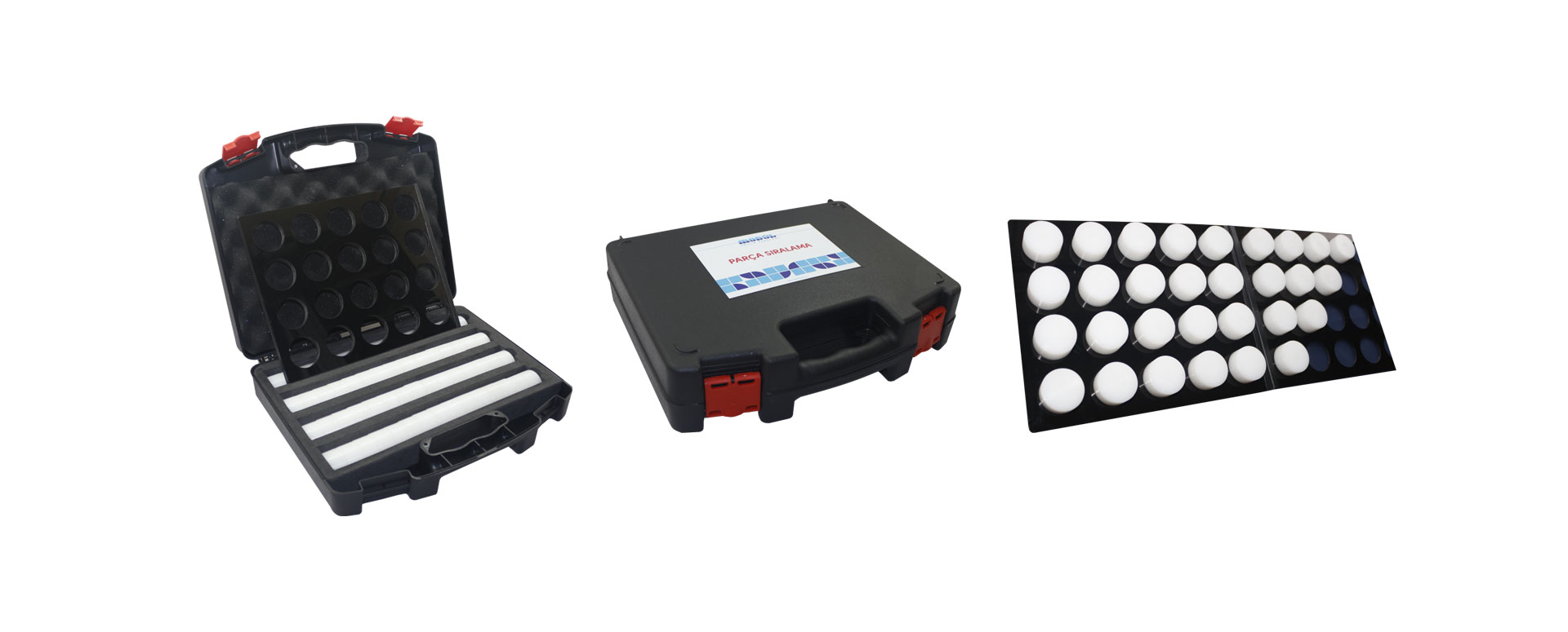 Eğitim seti özel olarak hazırlanmış taşıma çantası içine yerleştirilmiştir. Katlanabilir özellikte bir uygulama paneli, 60 adet plâstik malzemeden yapılmış; silindirik kesitli tamburdan oluşur.